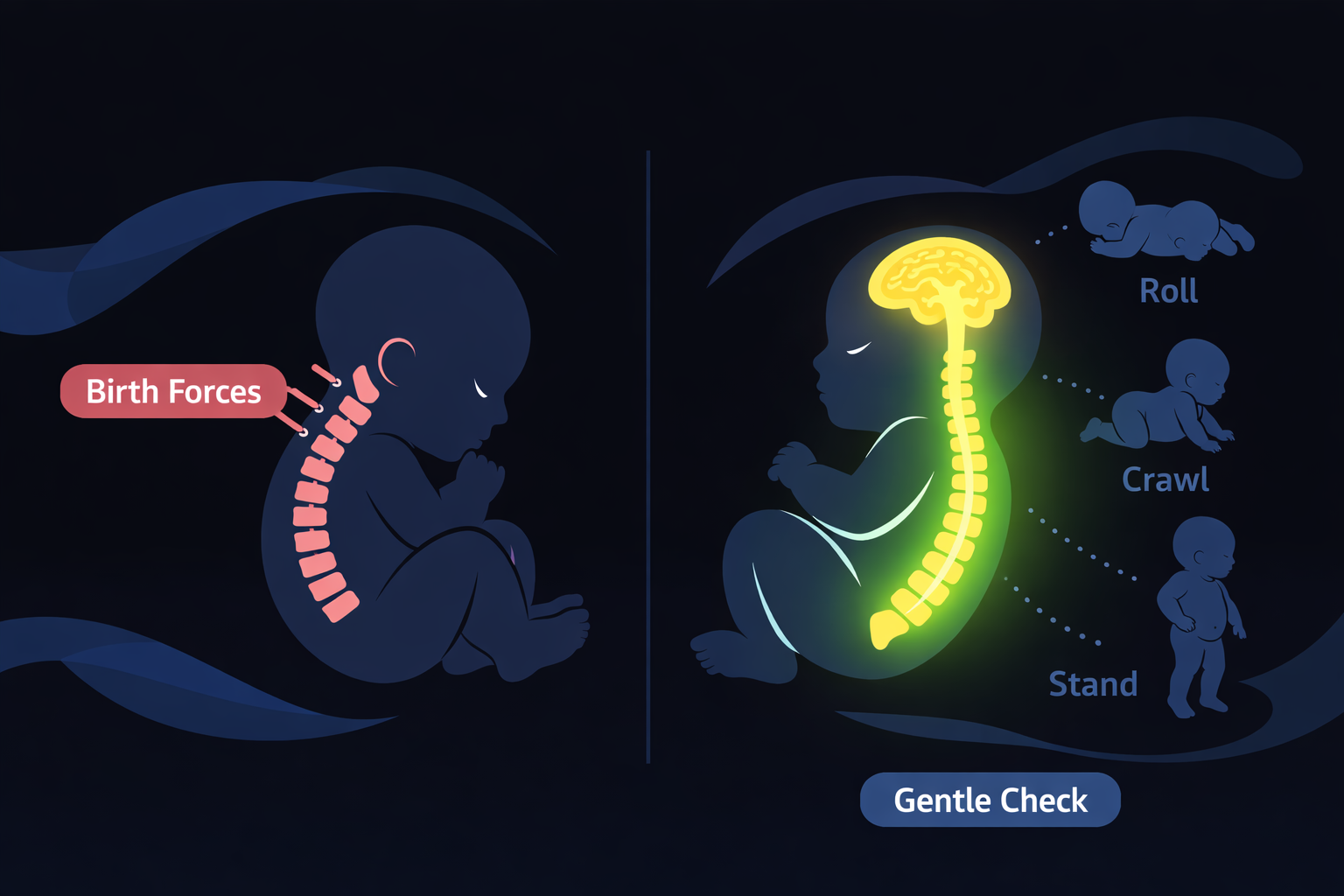Early spinal assessments help identify tension patterns before they become ingrained.